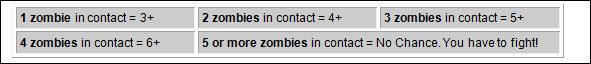 There are plenty of zombies roving about Innswich and more will show as time passes, so at the start of each zombie players turn consult the chart below to see how many more zombies appear that turn.